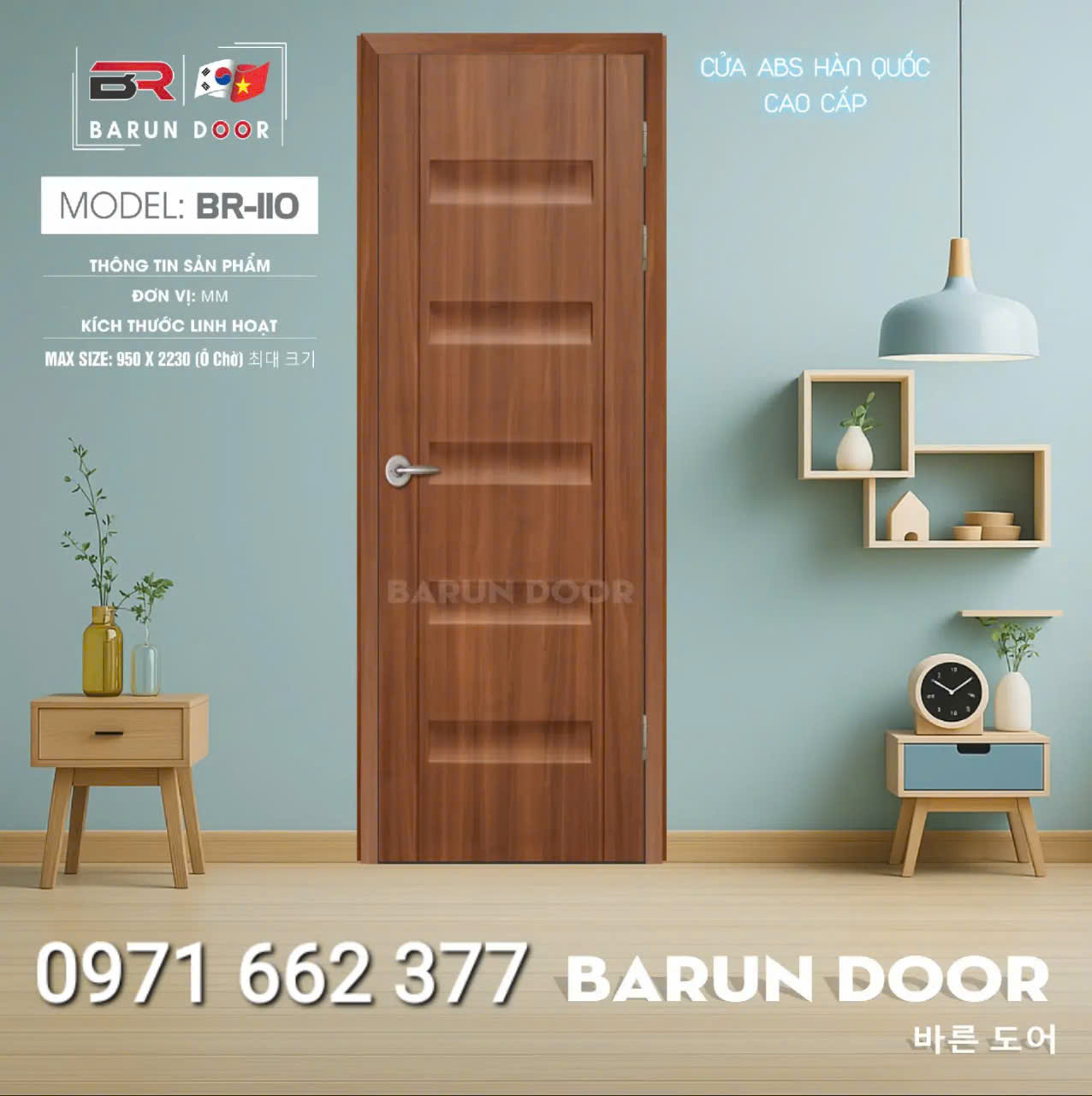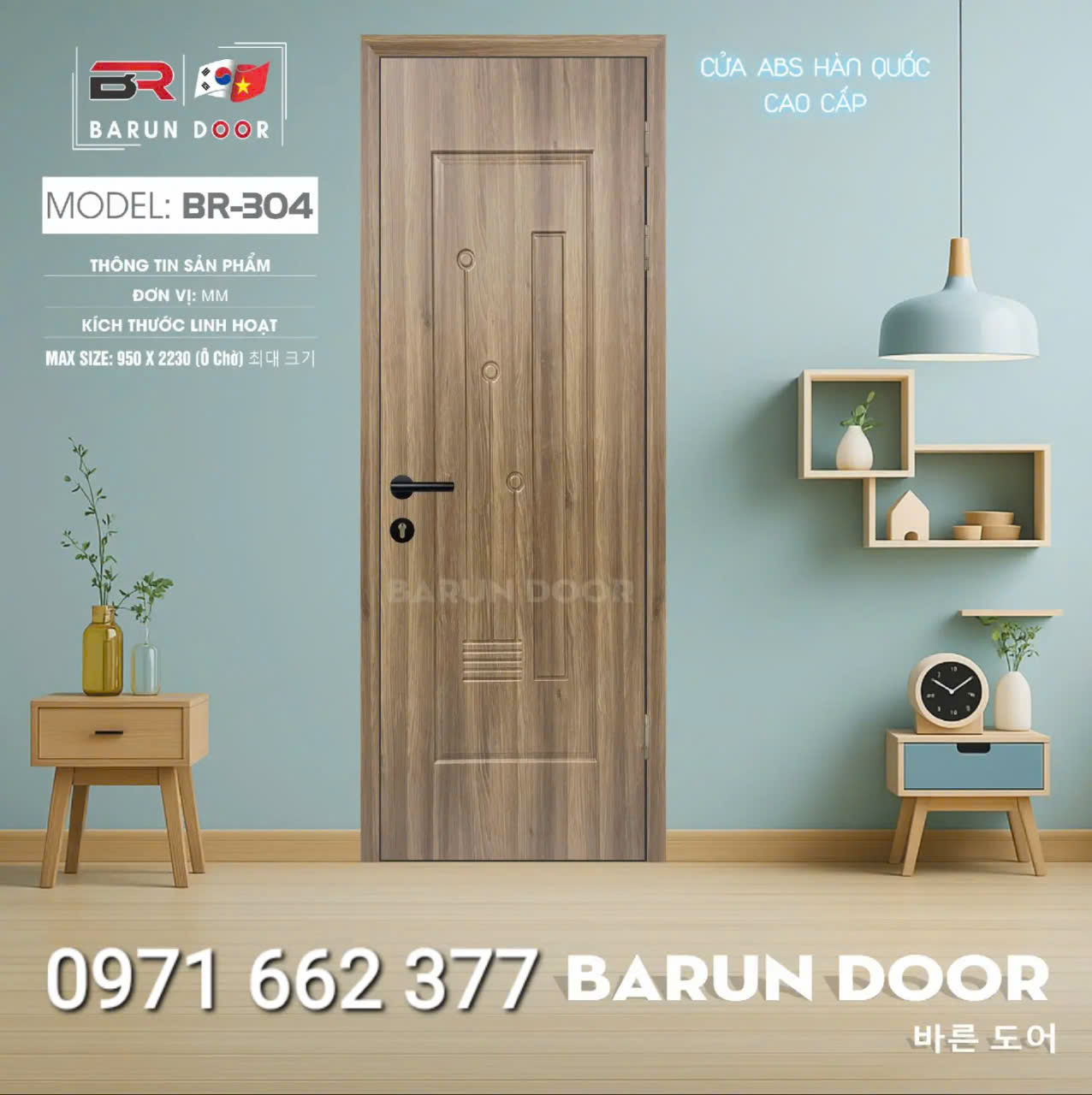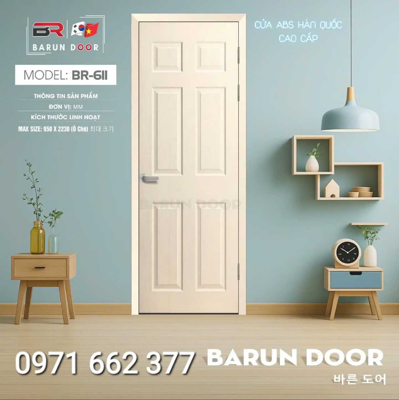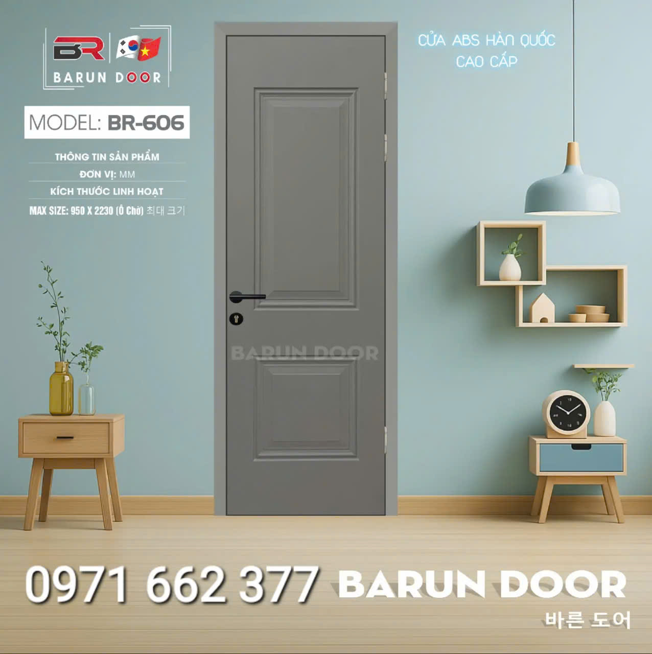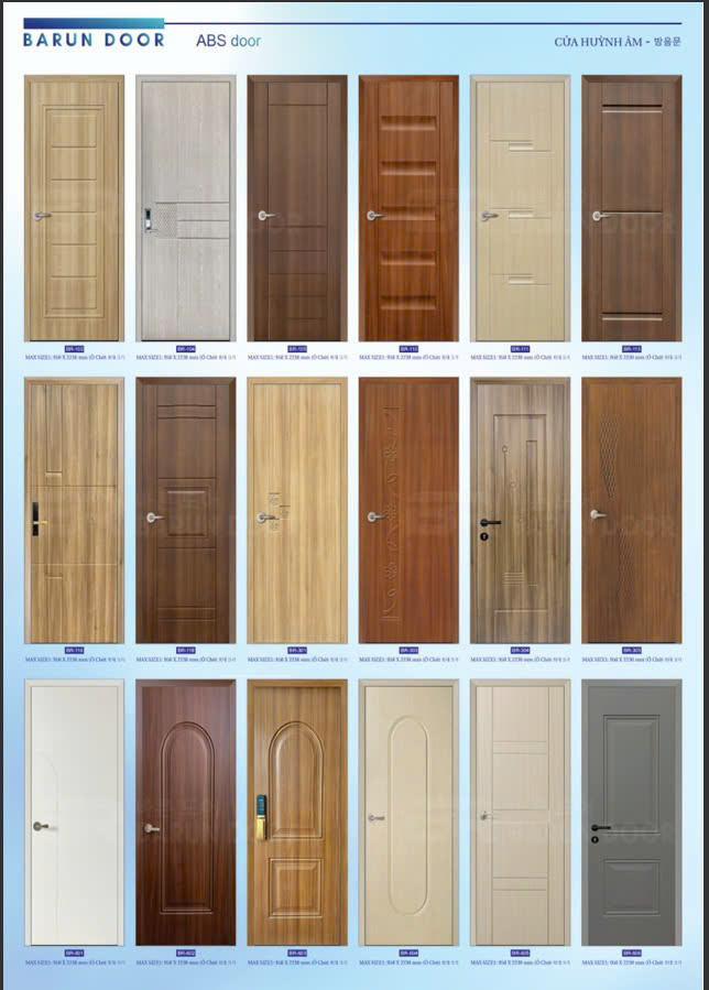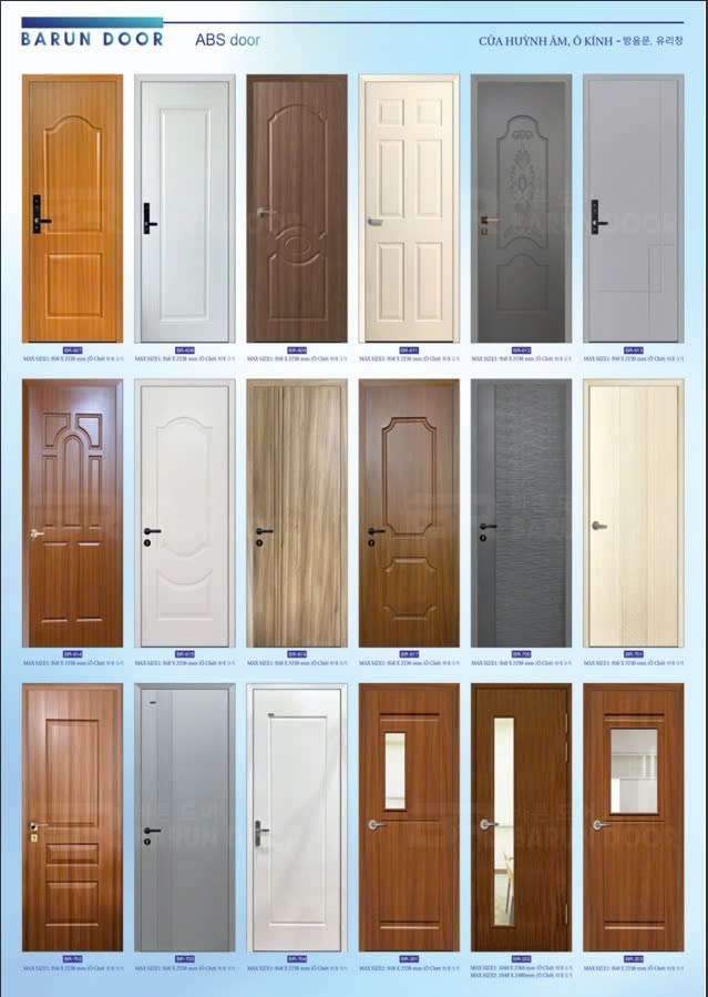 Cửa nhựa ABS Hàn Quốc – Cửa huỳnh âm, ô kính – Barun