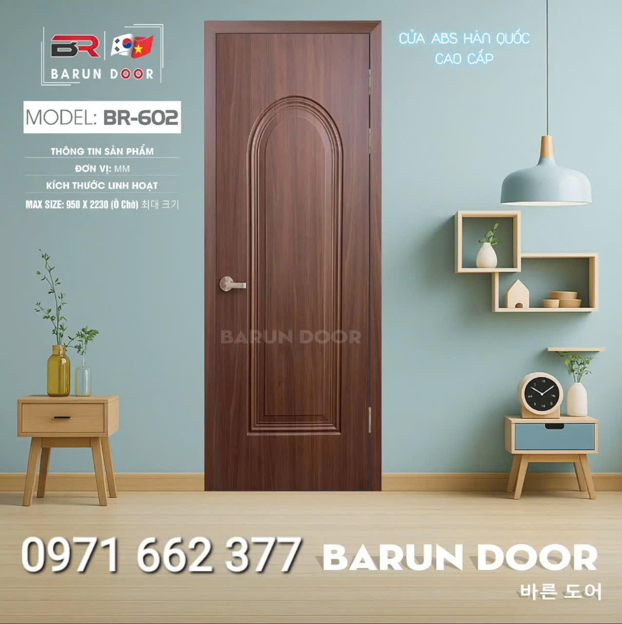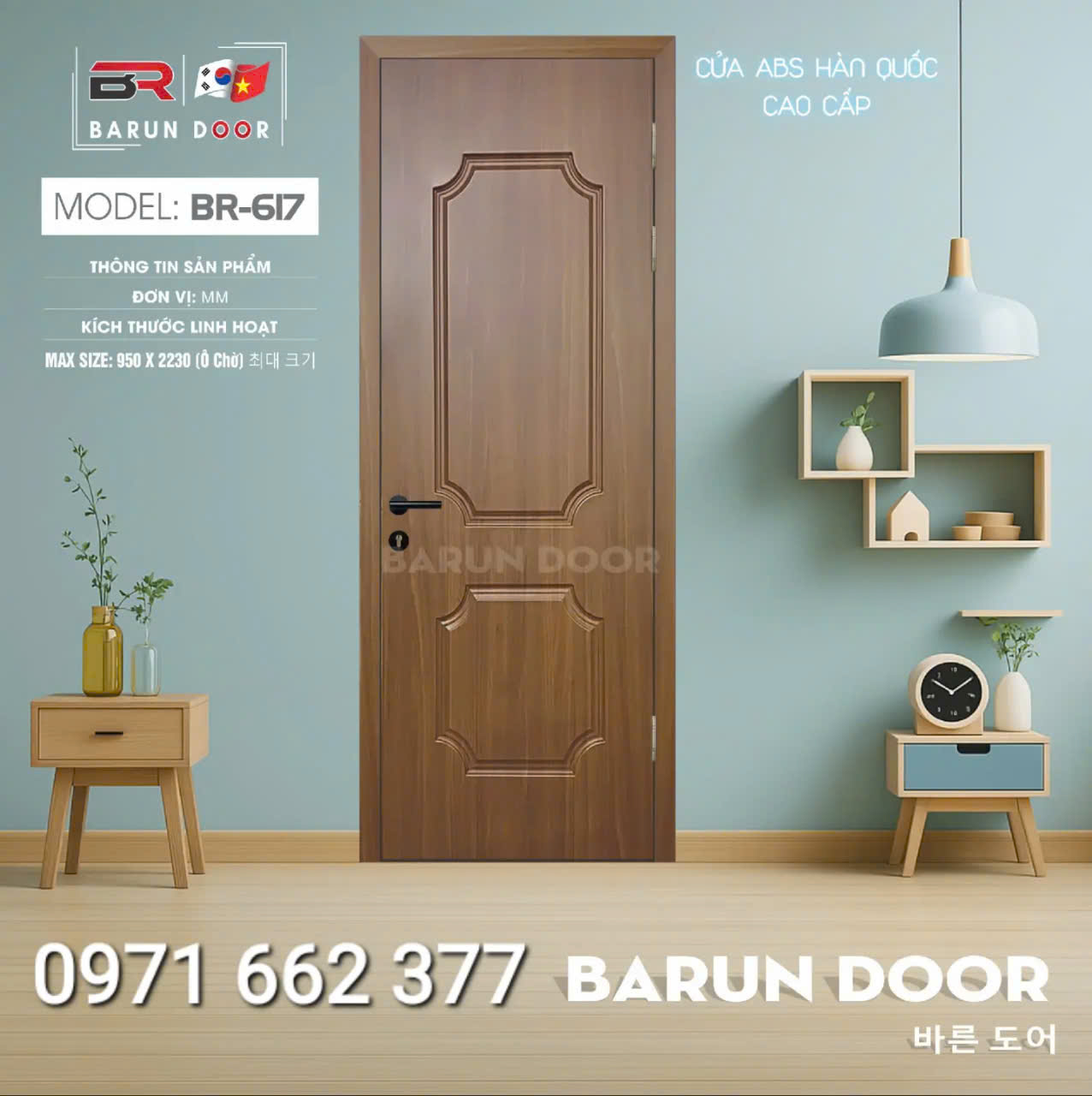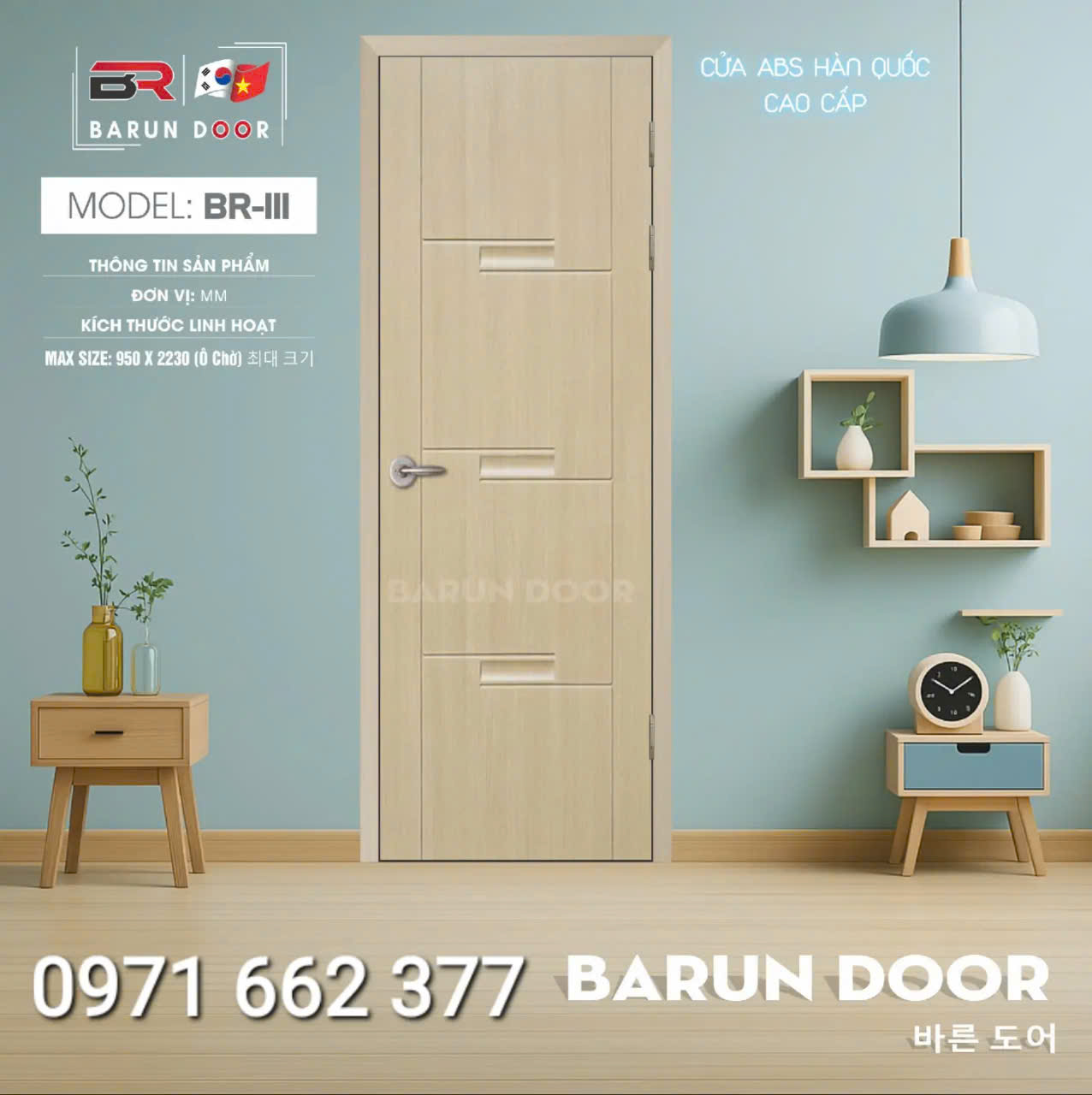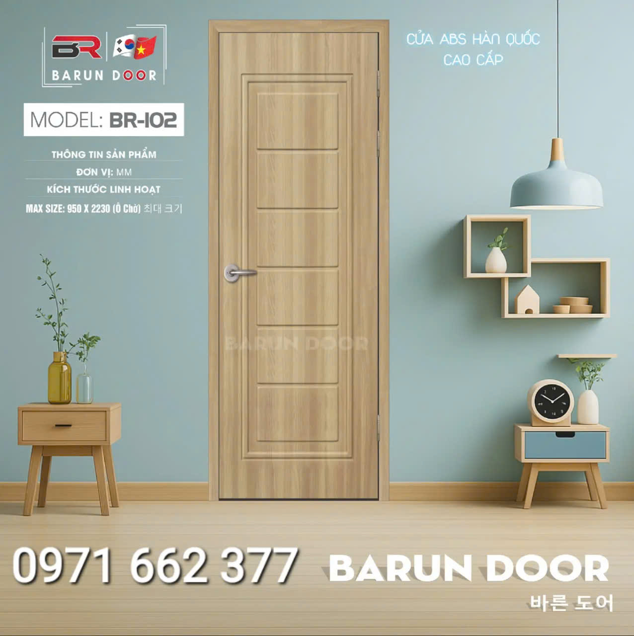 Cửa nhựa ABS Hàn Quốc – Cửa huỳnh âm, ô kính – Barun