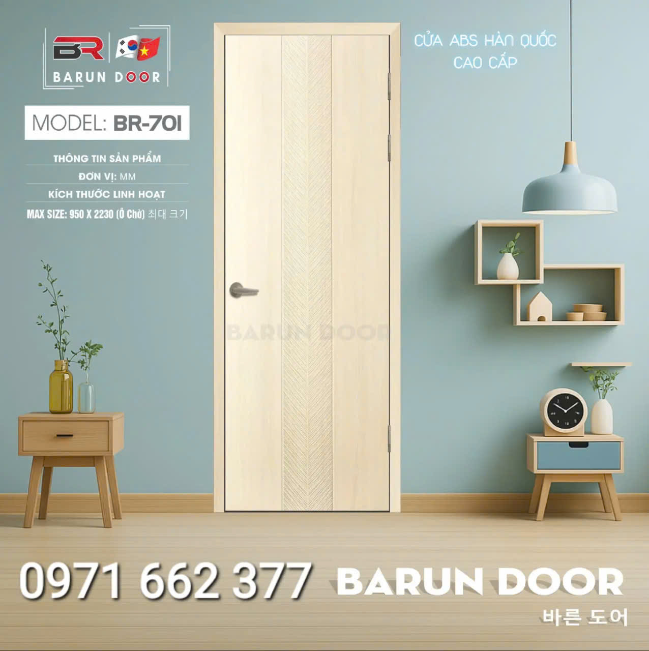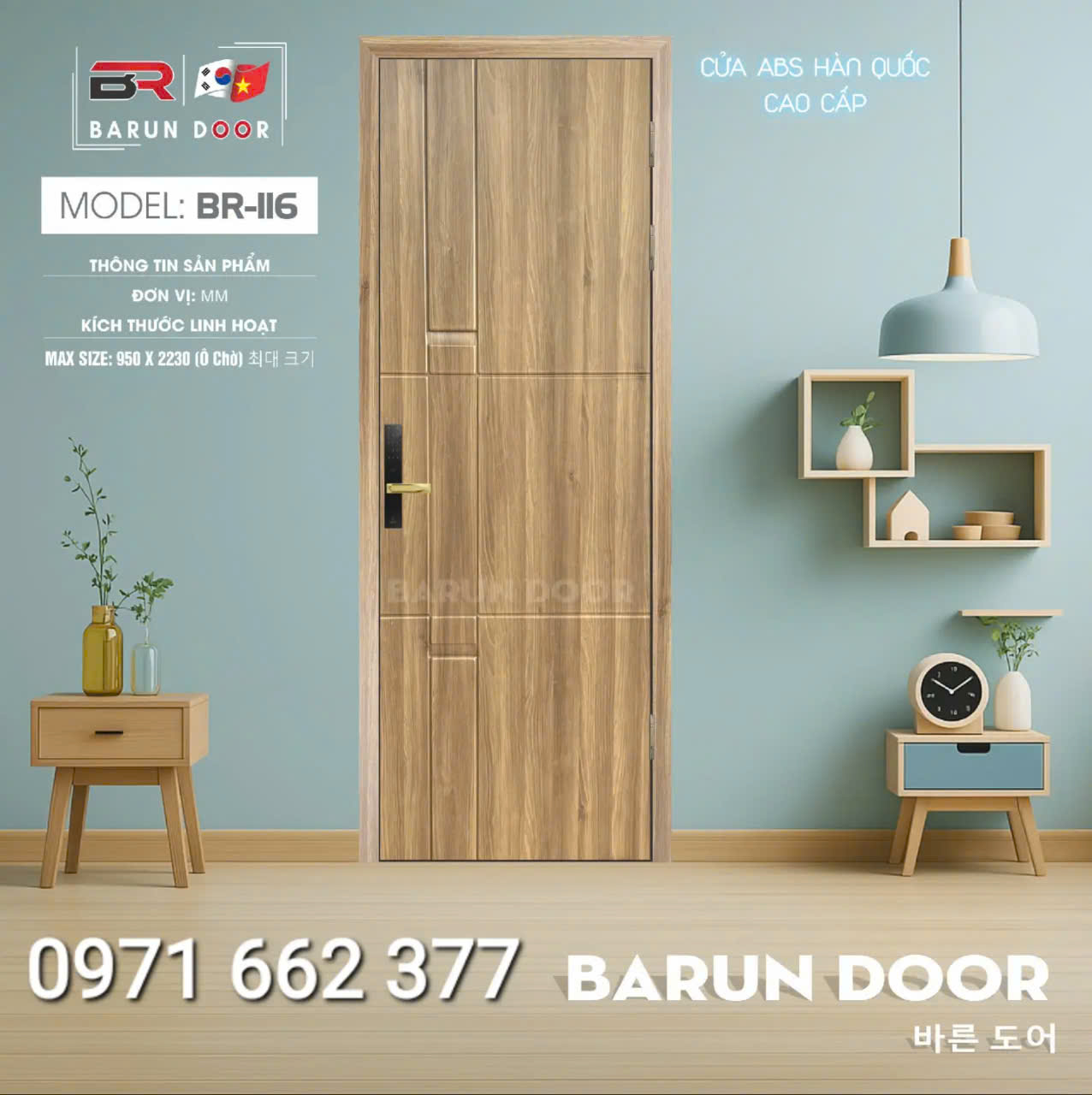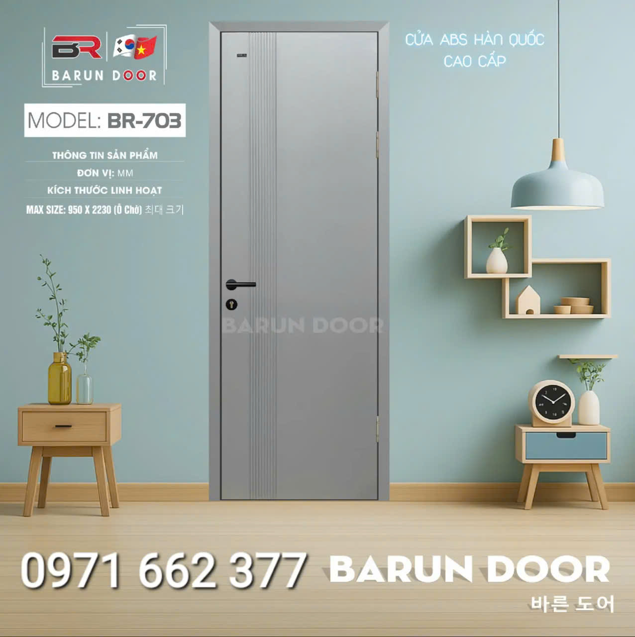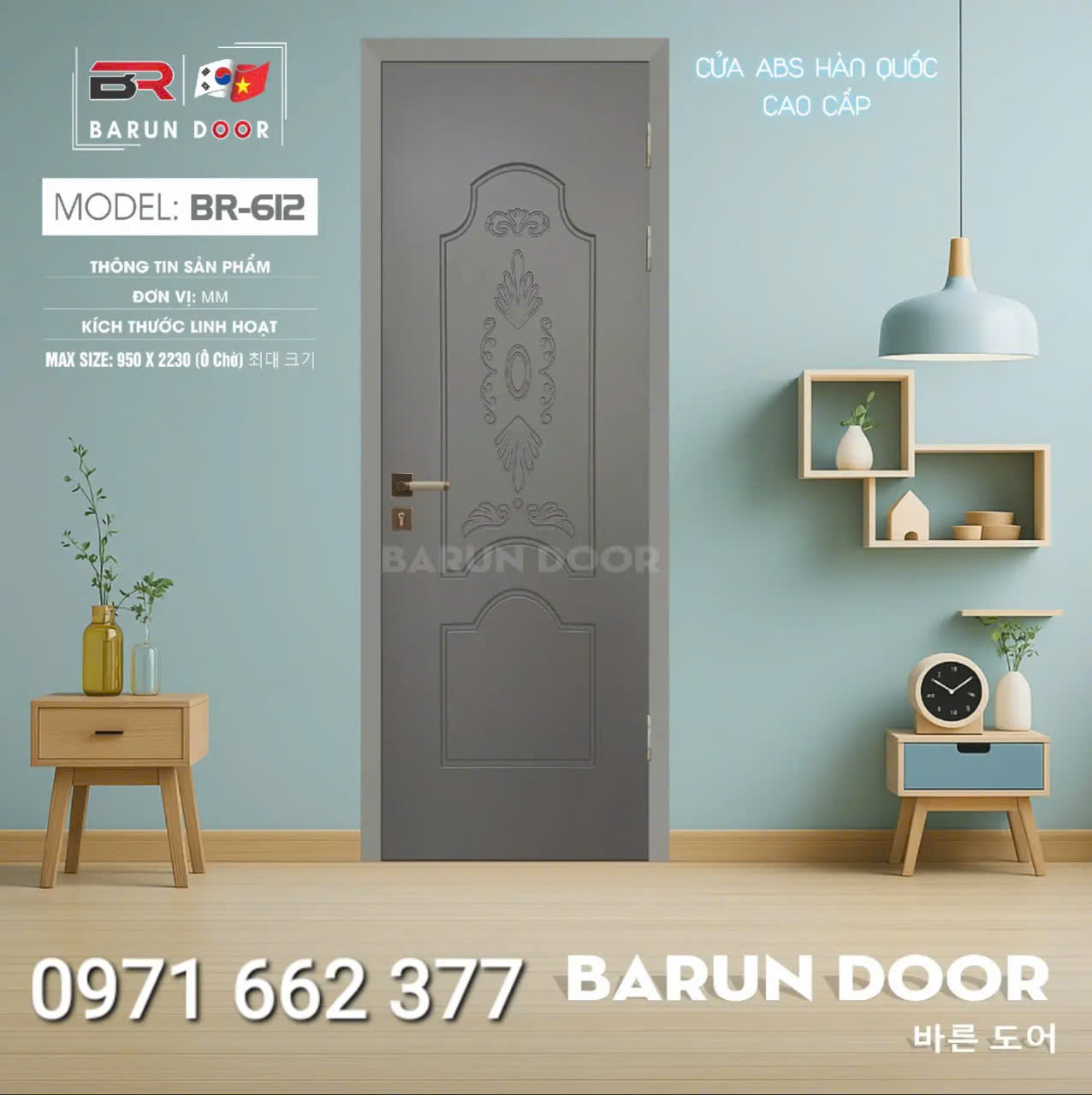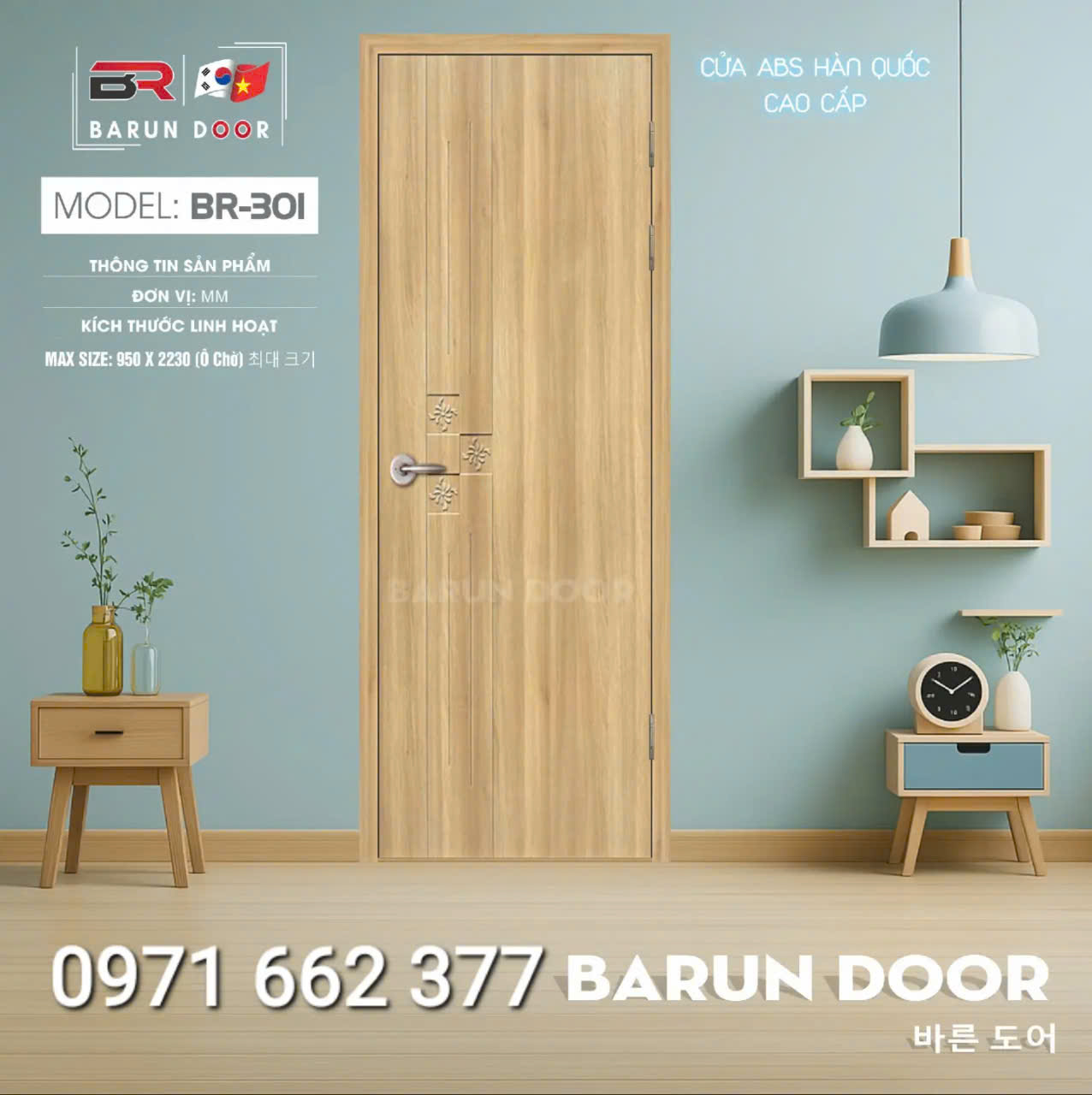 Cửa nhựa ABS Hàn Quốc – Cửa huỳnh âm, ô kính – Barun