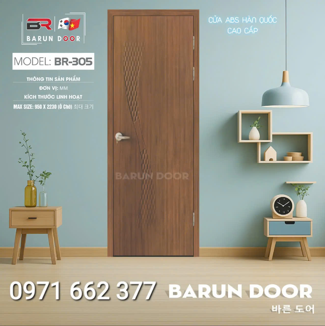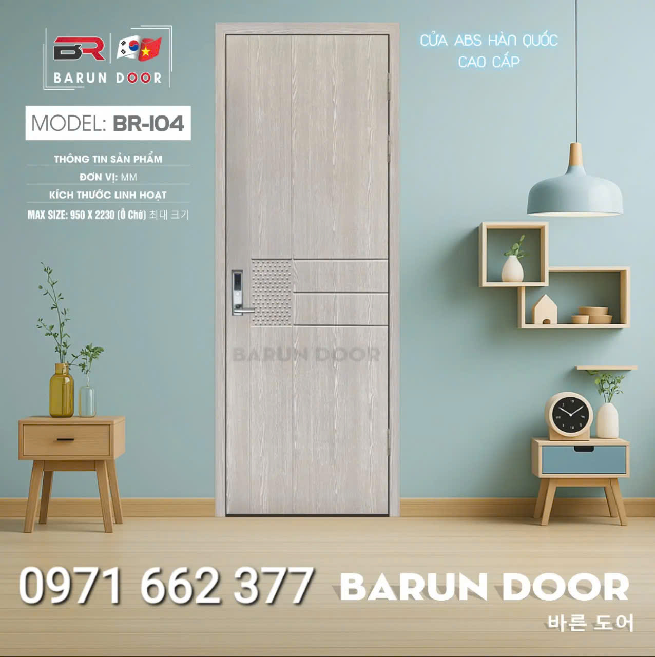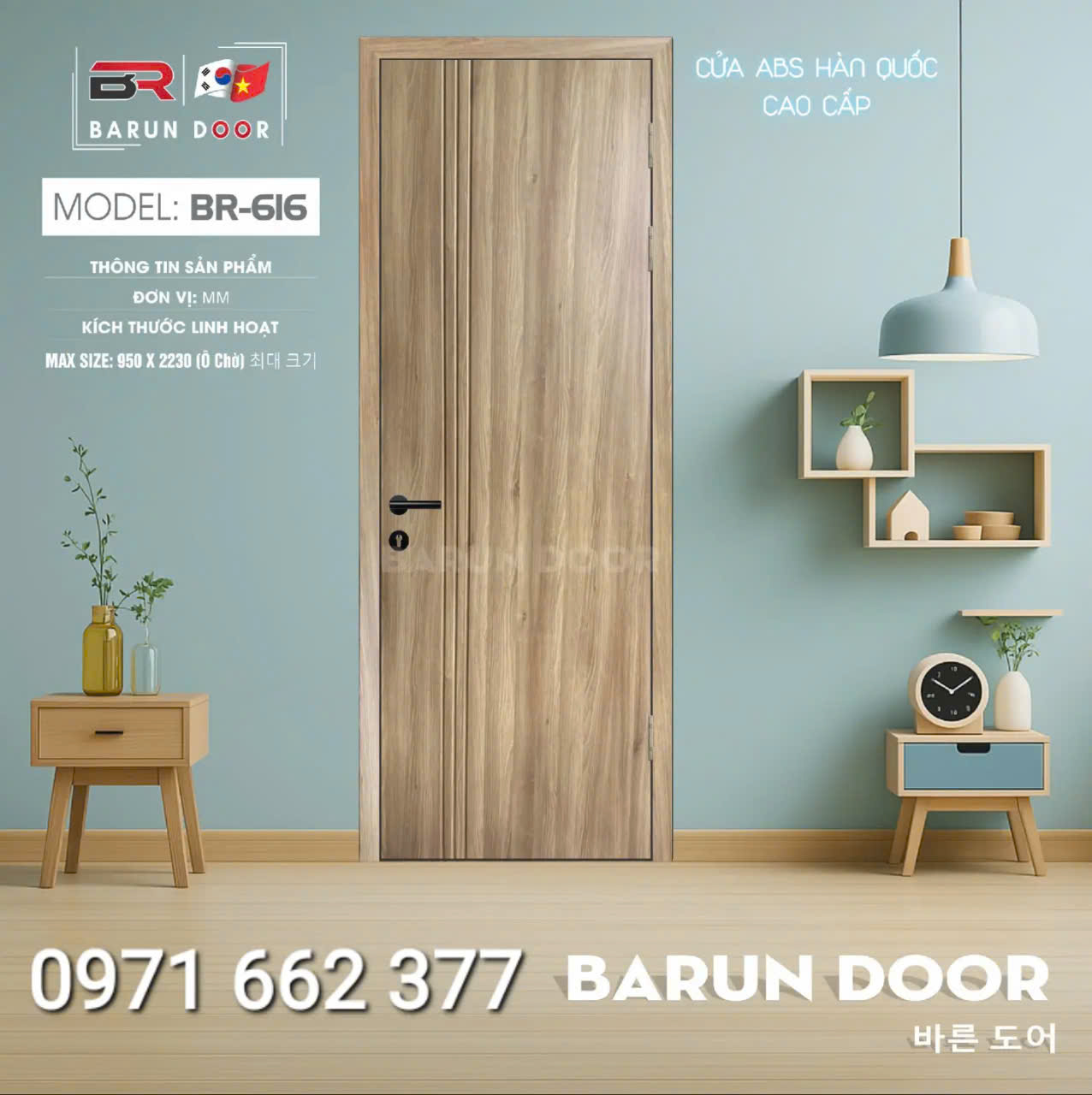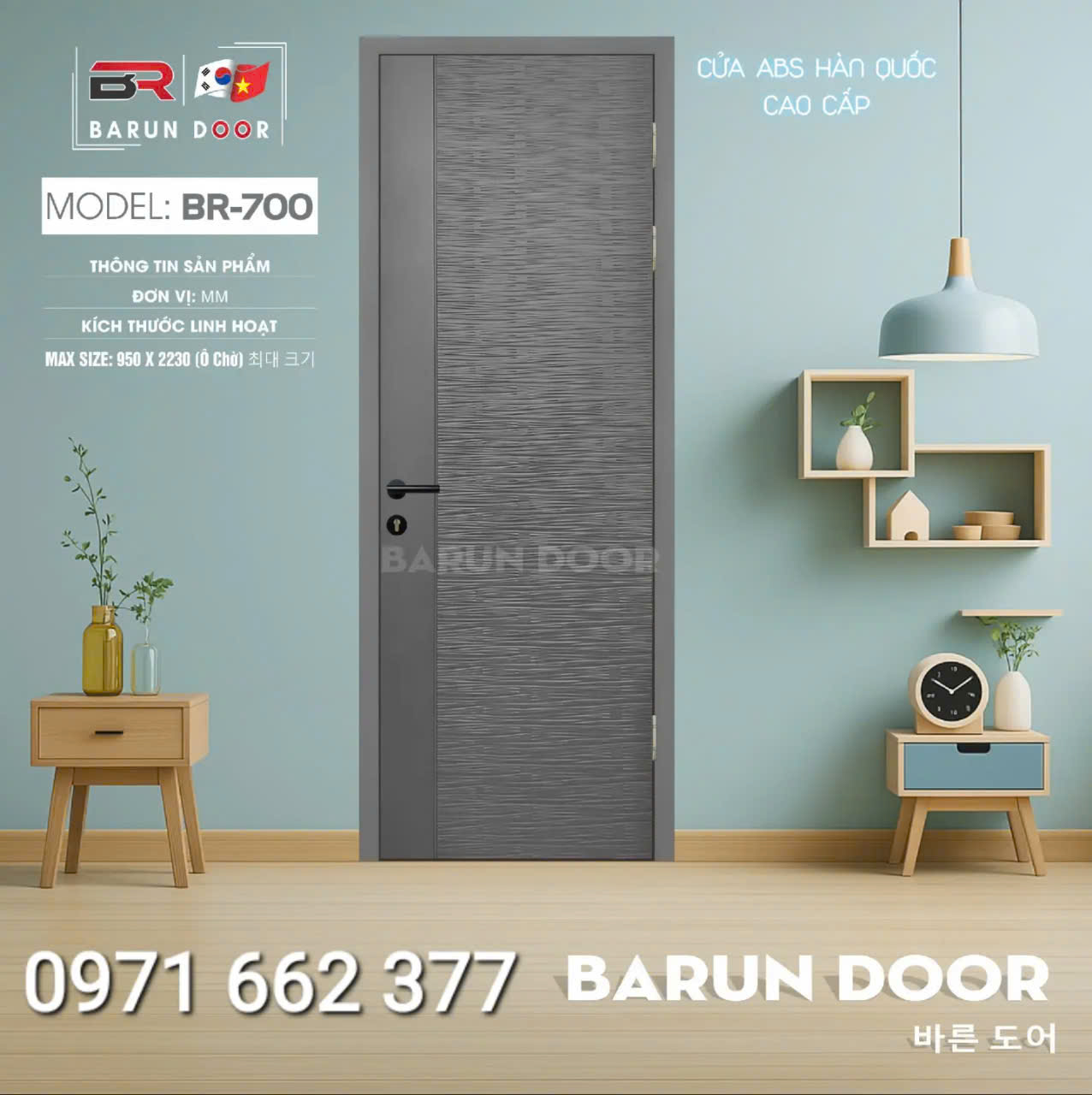 Cửa nhựa ABS Hàn Quốc – Cửa huỳnh âm, ô kính – Barun